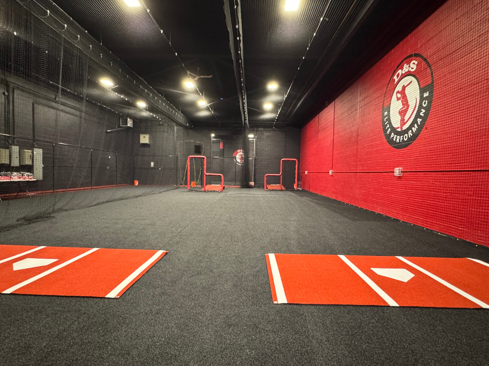 Our hitting lanes (lane 4 and 5 are 30×15) are ideal for perfecting a swing by working on a batting tee, soft toss, front toss and batting practice.